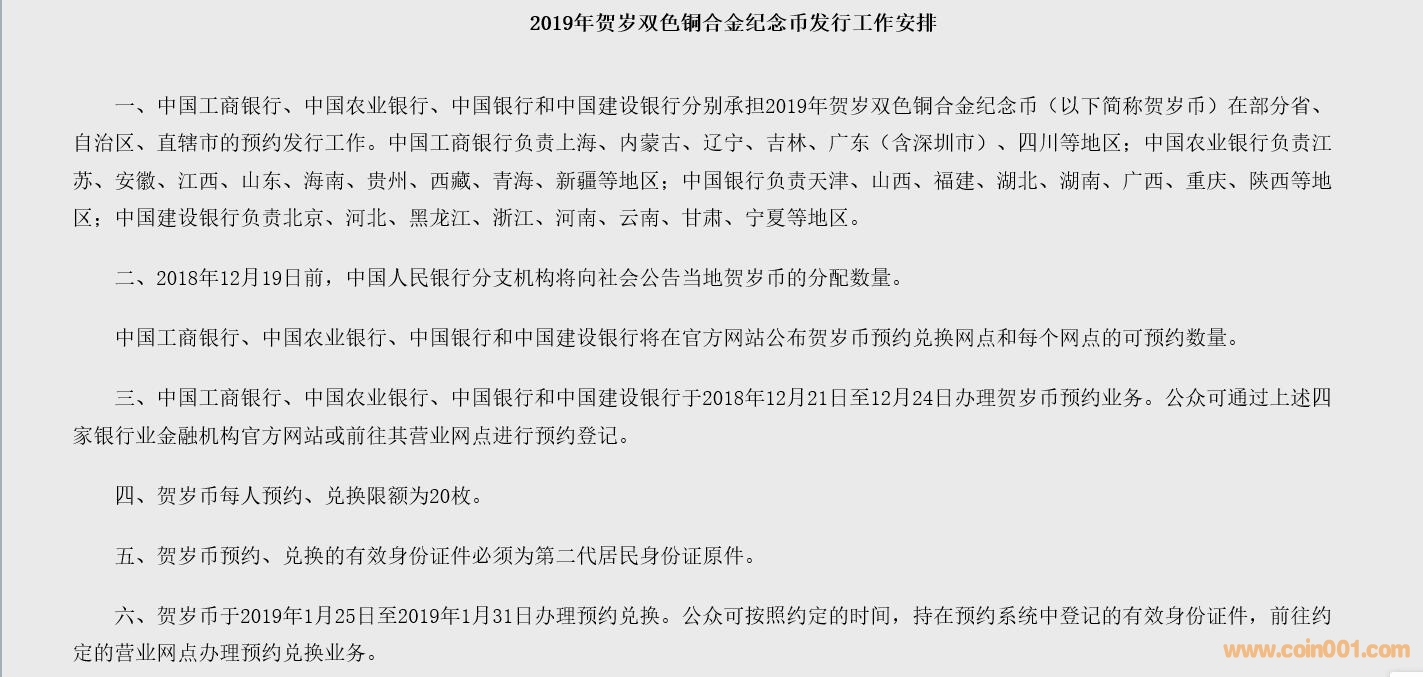 3.2019年賀歲雙色銅合金紀念幣發(fā)行工作安排