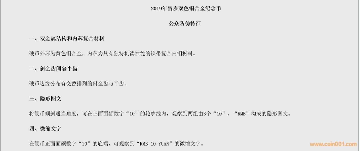 4.2019年賀歲雙色銅合金紀念幣公眾防偽特征