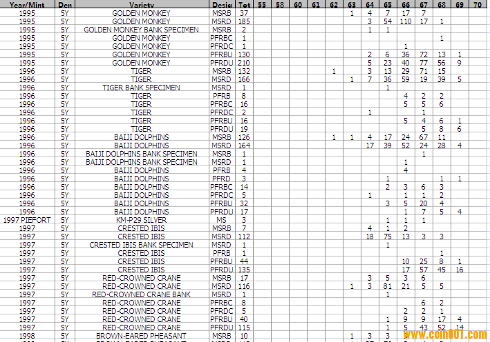 NGC硬幣評級分?jǐn)?shù)分布 ..