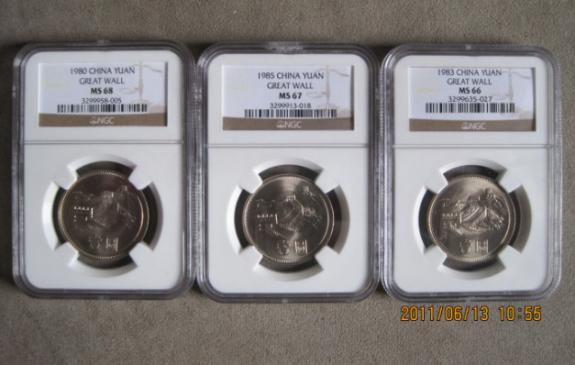 3:1980年MS68級普制長城一元,定價為5099元.串號3299958-005如圖.本人拍過一枚5000元給王建元兄.5088元賣了枚給王彤兄.