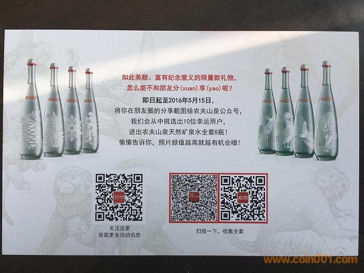 農(nóng)夫山泉紀念版“金猴套裝”全球限量發(fā)行15萬套!只贈送農(nóng)夫山泉官微“金猴送水”抽獎中獎客戶,市面上不出售,機會難得!