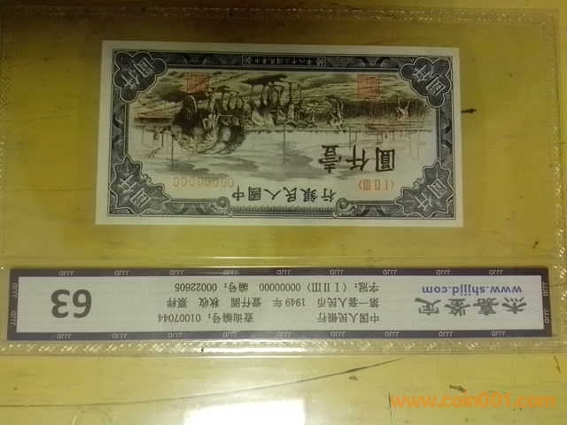 一版豐收1000元票樣