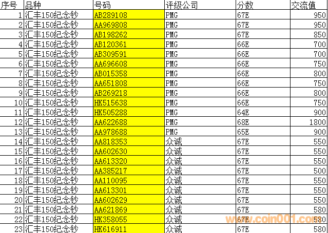 最低價(jià)匯豐150紀(jì)念鈔PMG