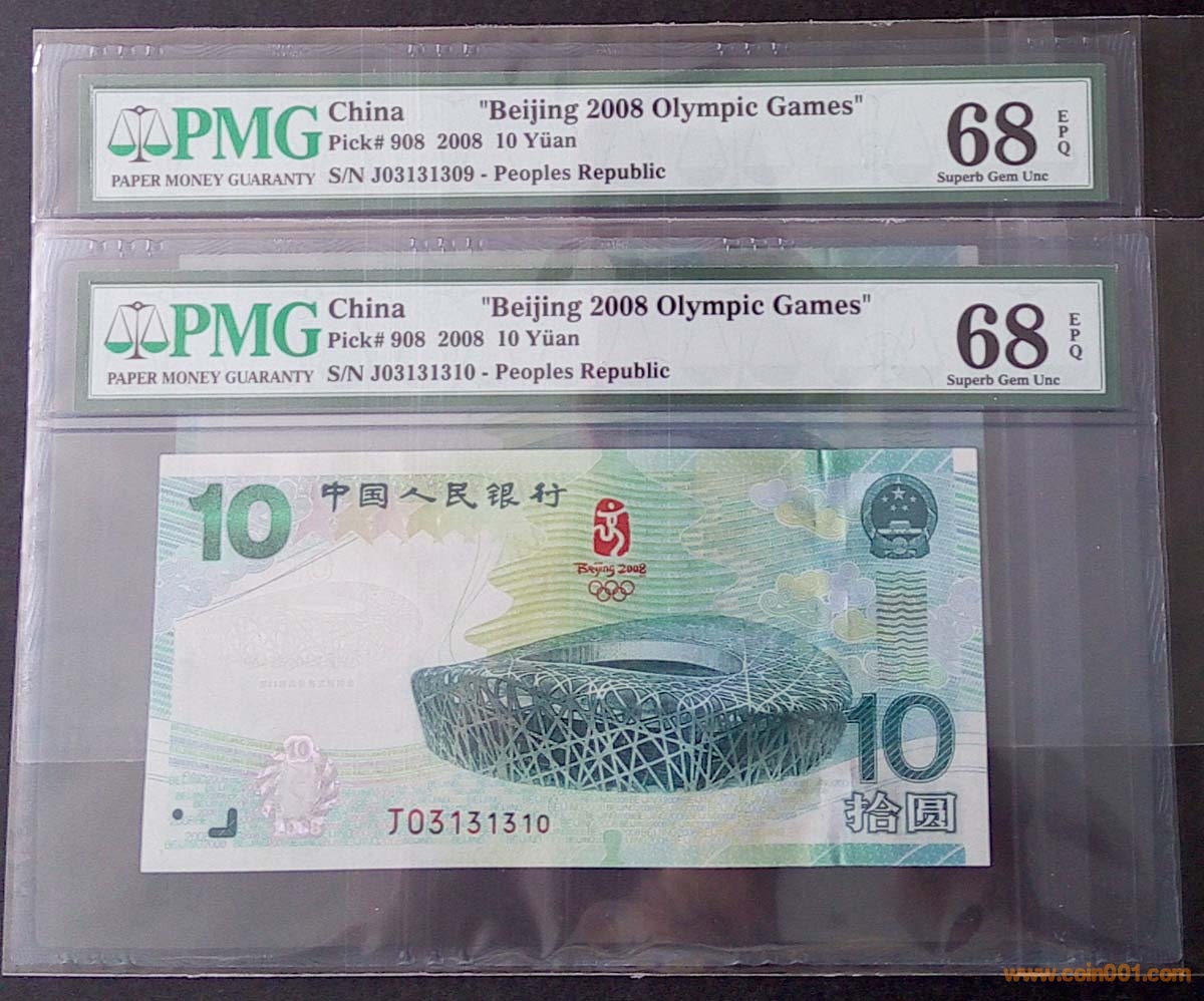 PMG 66E/67E/68E 奧運鈔 綠 ..