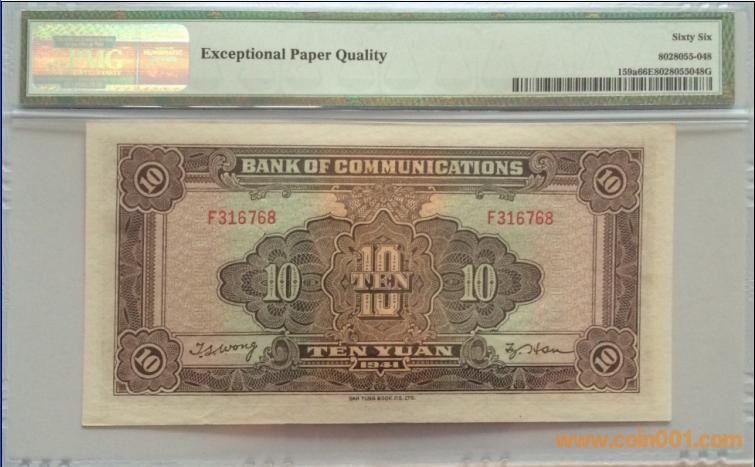 交通銀行十元火車PMG66 ..
