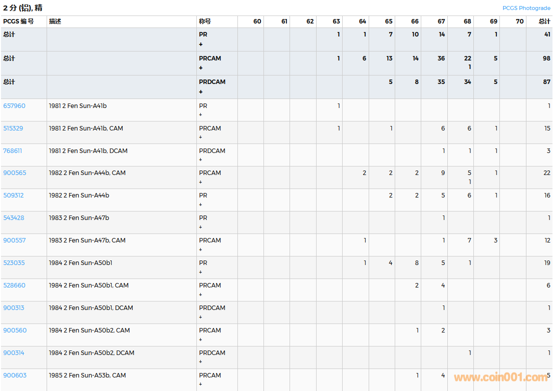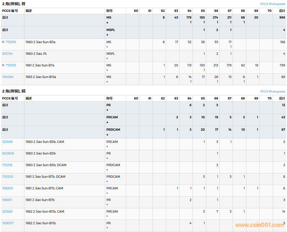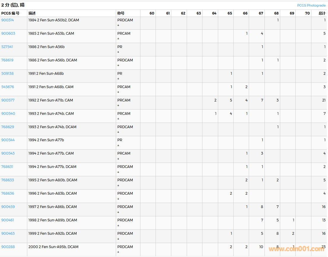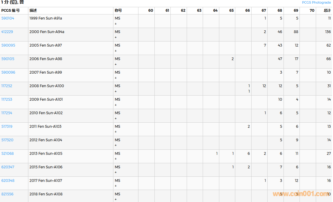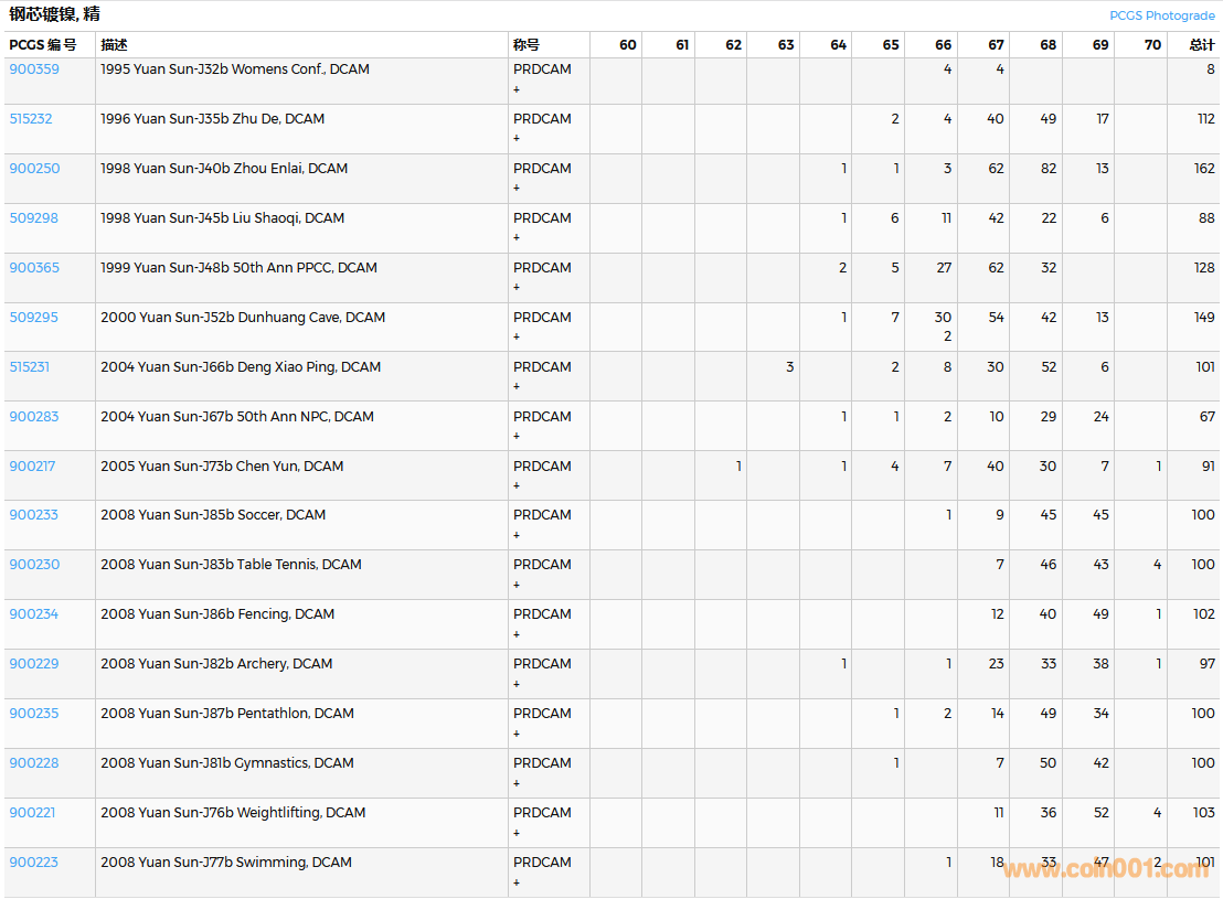 PCGS硬幣評(píng)級(jí)數(shù)量報(bào)告( ..