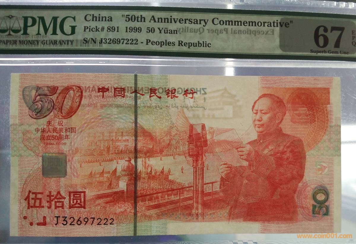 PMG建國(guó)鈔伍拾圓 紀(jì)念鈔50元 豹子號(hào) 66/67 EPQ
