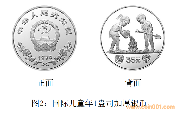 在圖2中展示的是1980年發(fā)行的1979年號國際兒童年1盎司加厚銀幣。