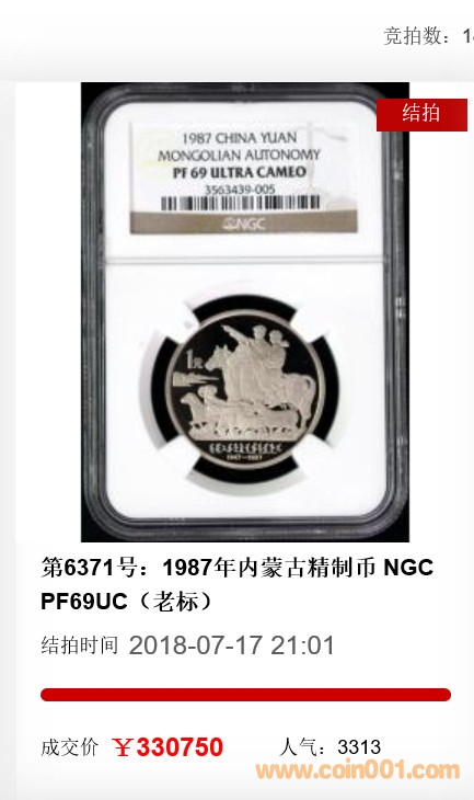 不過其然,在最后的半小時內(nèi),出價開始活躍起來,先是精制內(nèi)蒙發(fā)力,從20萬出頭,開始一路上漲,在20:58分的時候突破30萬,群中一路報喜??梢娋吩诰W(wǎng)站得到了充分的體現(xiàn),最終以33萬的價格成交,力壓86。接下來就看建黨精制樣幣了,經(jīng)過最后的多輪競爭,最終也突破了30萬,可喜可賀。最終精制內(nèi)蒙古和精制建黨樣幣以總價63.5萬的價格成交,離我當(dāng)日傍晚所猜的65萬的價格最為接近,最終獲得網(wǎng)站獎品。