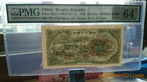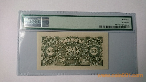 一版二十元立交橋,美國PMG本土評(píng)級(jí)PMG64分,評(píng)級(jí)幣編號(hào)為821b,是美國PMG公司給立交橋的稀少無自由版編號(hào),入殼非常少,全新絕品原票兩連號(hào)送評(píng),因圖案不對(duì)稱嚴(yán)評(píng)給了64分,另一張尾910為65EPQ,墨綠色油墨濃厚鮮艷,票面細(xì)節(jié)紋路清晰,立體感強(qiáng),好號(hào)全程無4尾9,票面和四角完美。