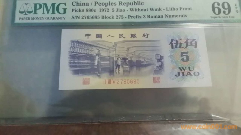 9)1972年紡織伍角,II VII V 2765685,PMG,69,EPQ 900元