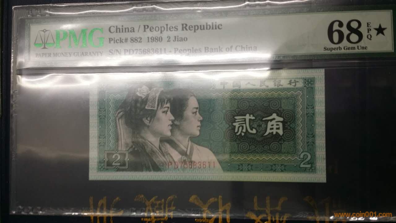 2)1990年,伍拾圓,建國鈔,J59939563,PMG,68,EPQ 2000元