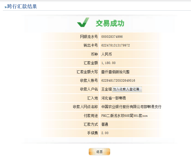 款已匯農(nóng)行,請(qǐng)查收!發(fā)貨煩請(qǐng)妥善包裝,為謝!