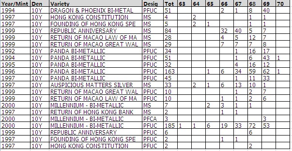 NGC 硬幣評(píng)級(jí)分?jǐn)?shù)分布 ..