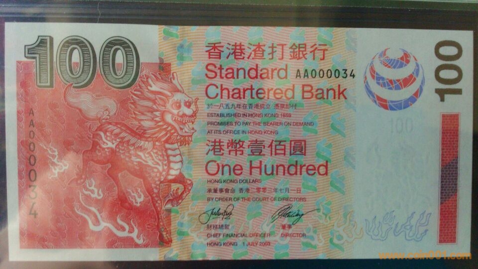 圖片:2003年,香港渣打壹佰元,AA,000034,PMG66,EPQ=2400,.jpg