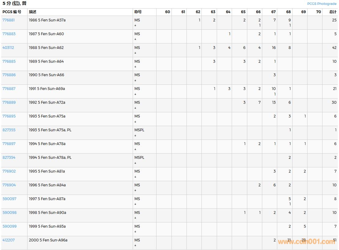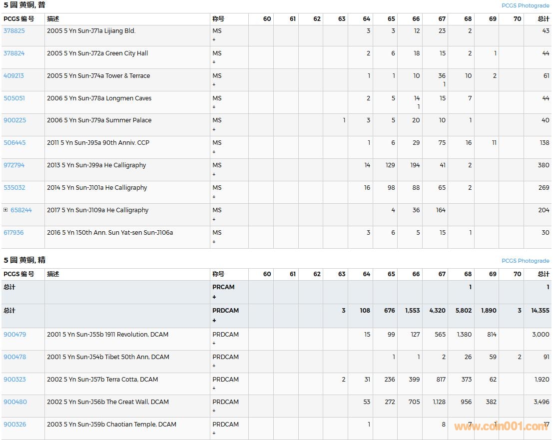 PCGS硬幣評(píng)級(jí)數(shù)量報(bào)告( ..