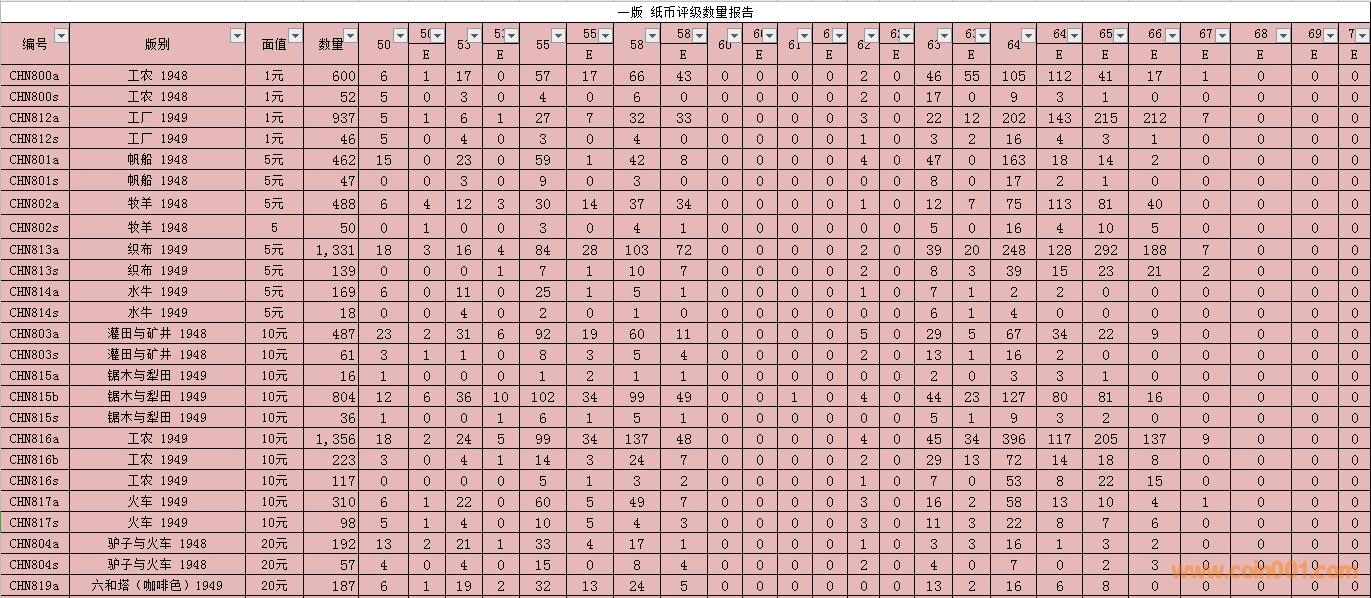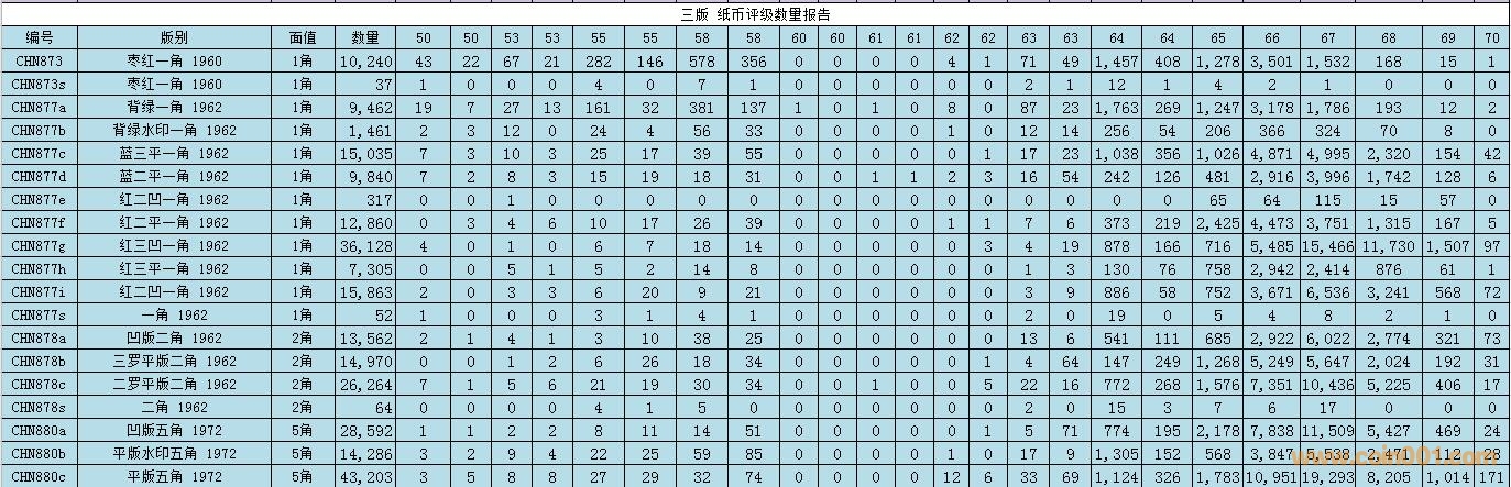 PMG紙幣評級數(shù)量報(bào)告