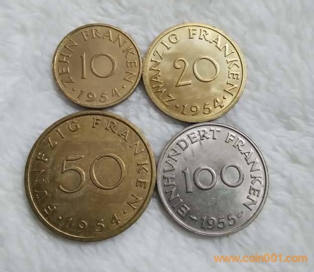 法占薩爾區(qū)1954-55年4枚 ..