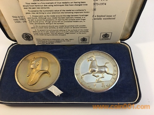 中英友好 文物展 套裝 馬踏飛燕 法老銀章一對(duì)