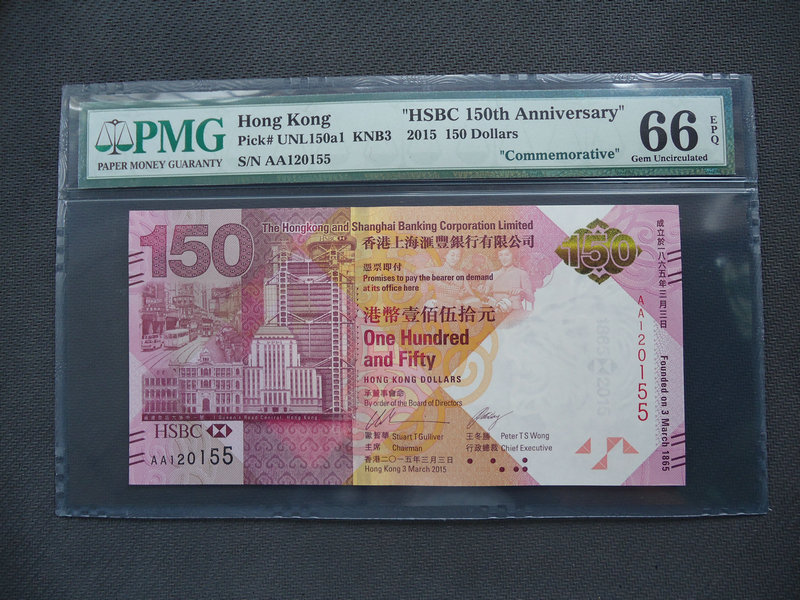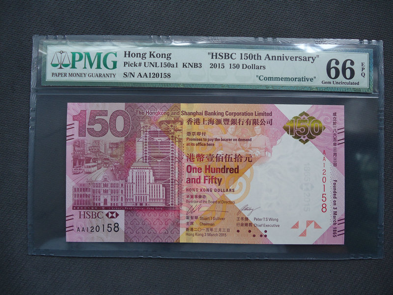 上個月剛剛發(fā)行的匯豐150周年紀(jì)念鈔