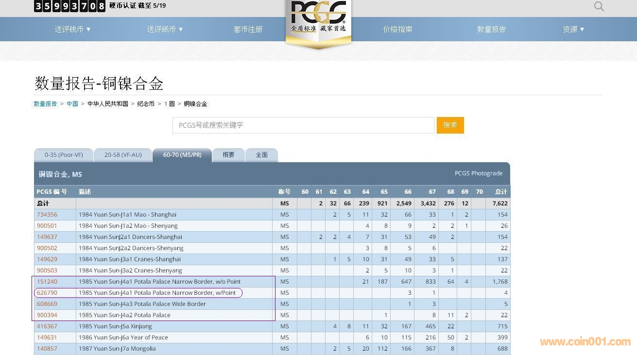 2017年5月18日,泉友首次發(fā)現(xiàn)PCGS官方網(wǎng)站增加了老西藏普制幣小星多屋版的版別編號http://www.pcgs.com.cn/。經(jīng)查閱發(fā)現(xiàn)新增版別的編號是:626790,描述是:1985 Yuan Sun-J4a1 Potala Palace Narrow Border,w/Point;同時(shí)原老西藏普制幣的版別編號不變:151240,描述變更為:1985 Yuan Sun-J4a1 Potala Palace Narrow Border,w/o Point。這是PCGS評級公司對老西藏幣小星多屋版的客觀描述。我們再次對PCGS評級公司及評級師客觀、認(rèn)真、負(fù)責(zé)、與時(shí)俱進(jìn)的精神表示深深的敬佩之情。不難看出PCGS評級幣公司在錢幣領(lǐng)域的研究始終處于領(lǐng)先地位。我們還記得老西藏幣直角邊版、小圖版等在各評級幣公司中也是首先由PCGS評級公司首先確立版別的,后由各評級幣公司紛紛效仿。我們更期望國內(nèi)其它評級幣公司在錢幣學(xué)術(shù)研究中能夠迎頭趕上。使錢幣評級能夠突破傳統(tǒng)單一的判定真假與品相,更重要的是不斷拓寬錢幣的研究領(lǐng)域,與時(shí)俱進(jìn),擔(dān)當(dāng)起弘揚(yáng)錢幣文化的使命。圖2
