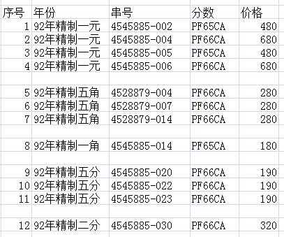 評級普通(精制)紀念幣交易