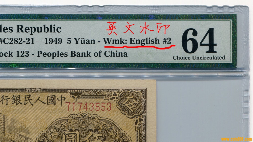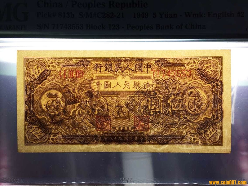 【PMG64,一版5元織布 ..