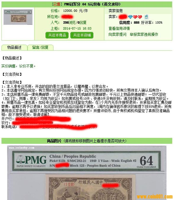 評級普通(精制)紀念幣交易
