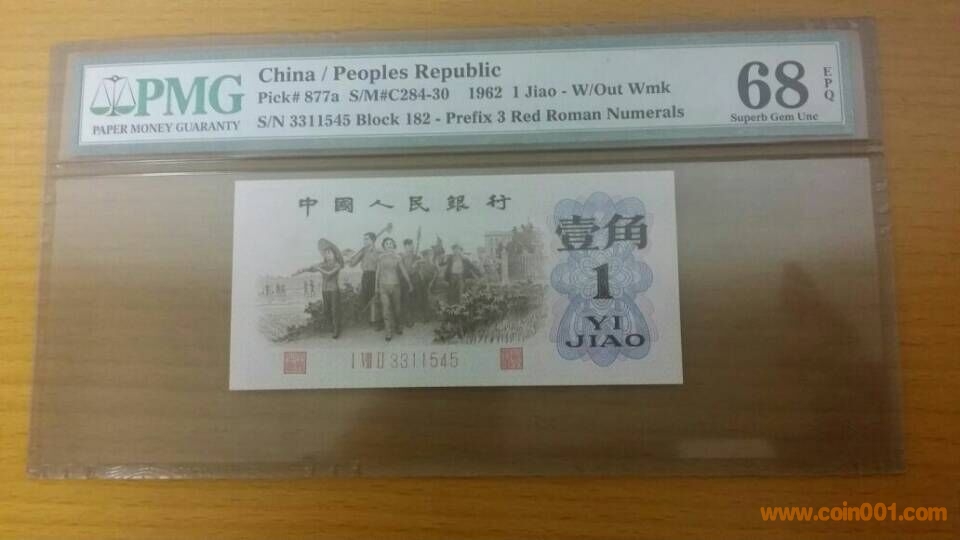1>1962年,壹角,背綠,I VIII II 3311545,PMG,68,EPQ 14600元