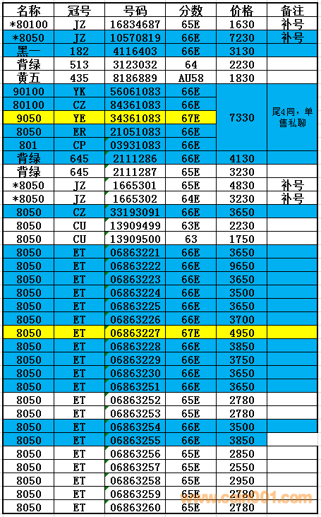 預(yù)售美國評級一批PMG ..
