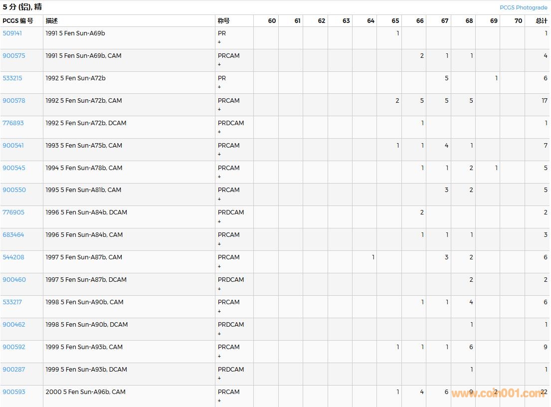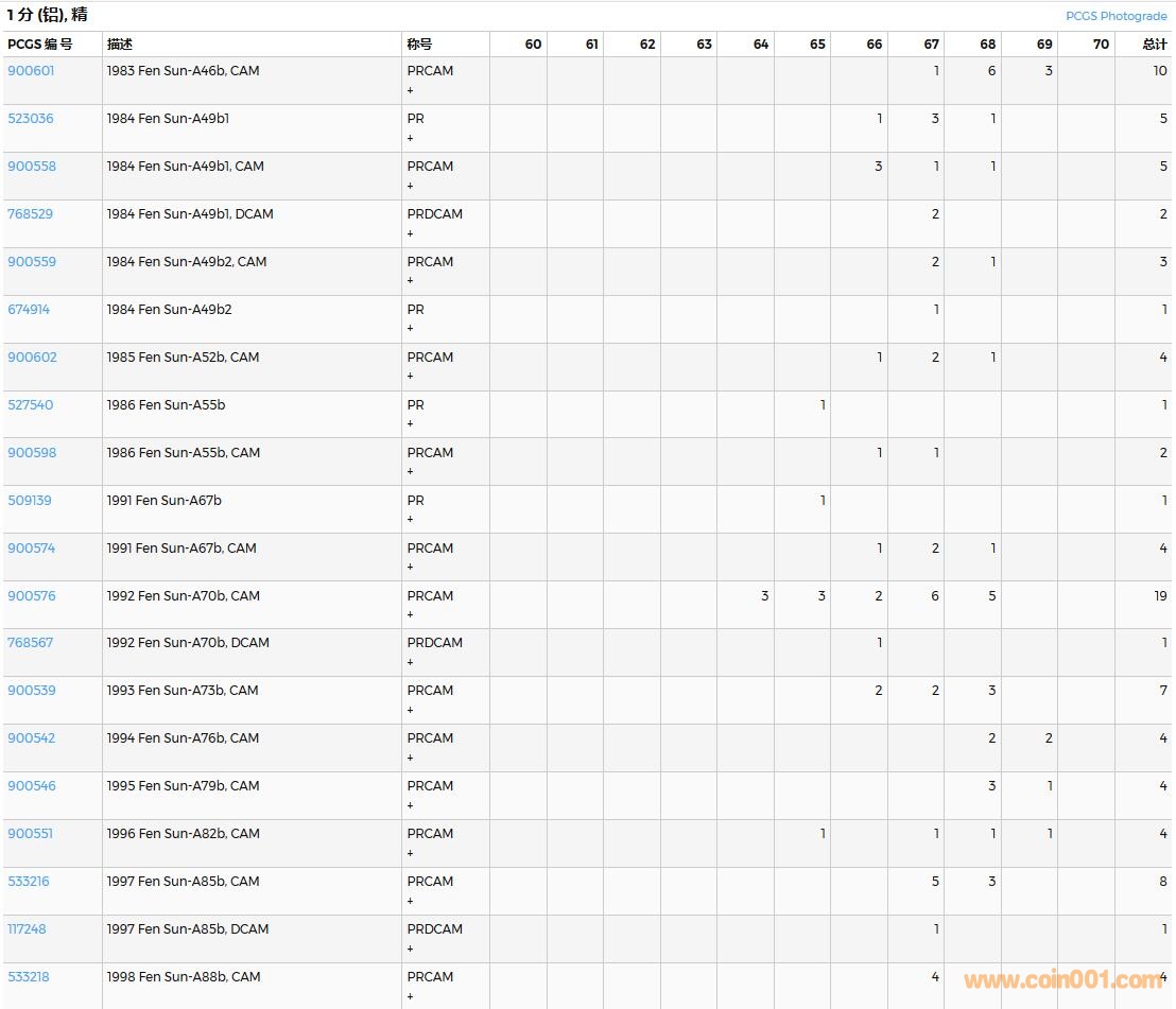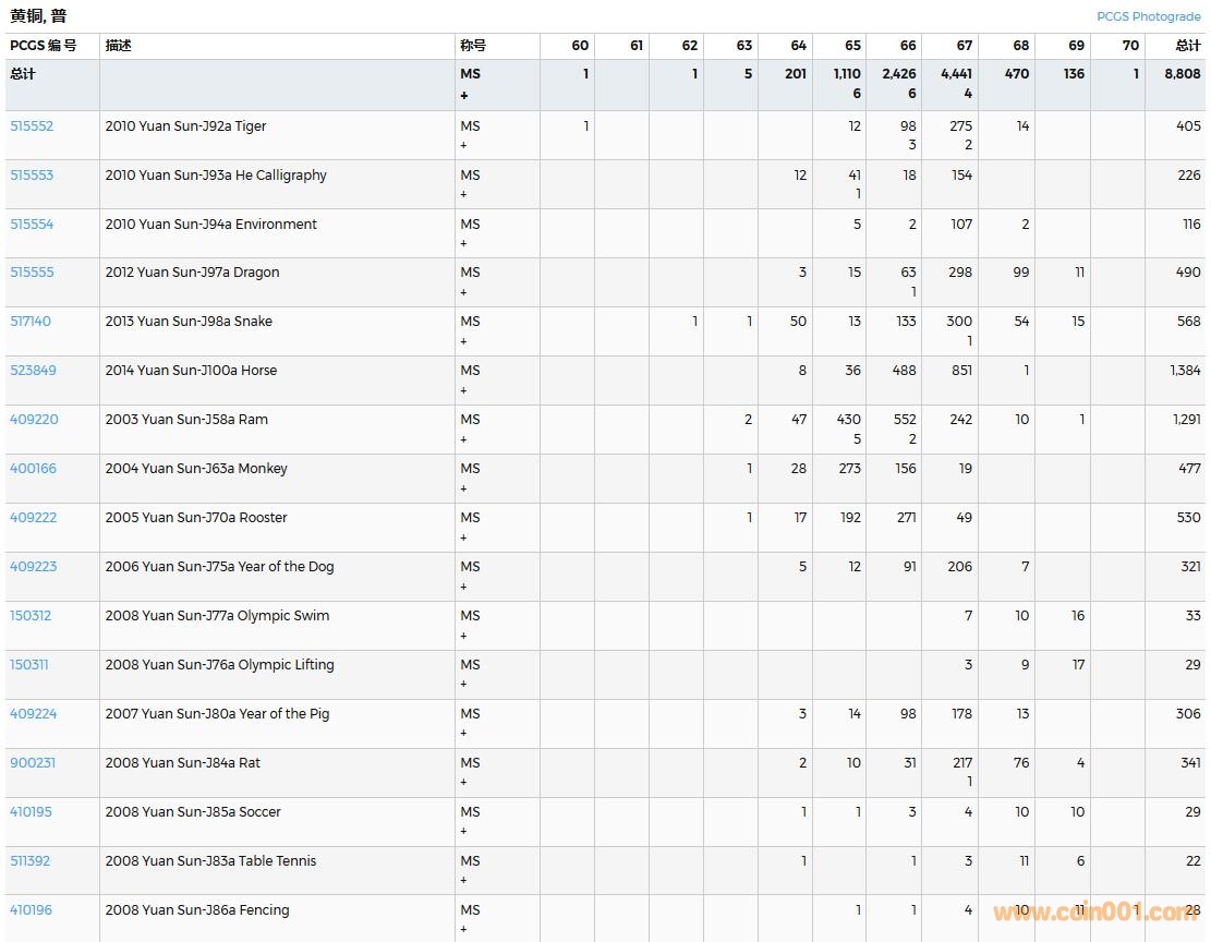 PCGS硬幣評(píng)級(jí)數(shù)量報(bào)告( ..
