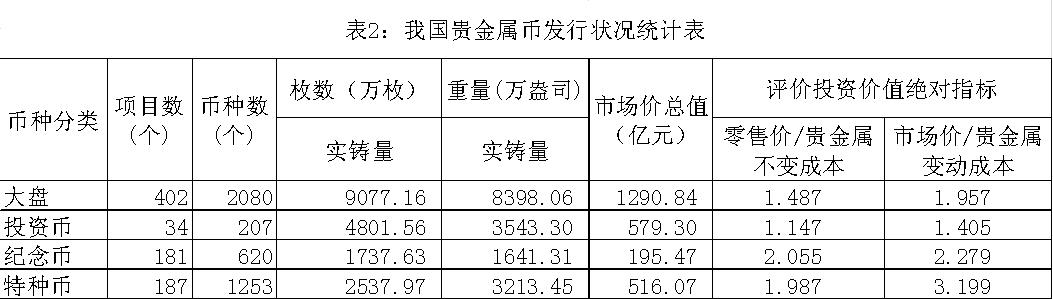 我國貴金屬貨幣的發(fā)行狀況見表2。其中大致可以分為三種情況。