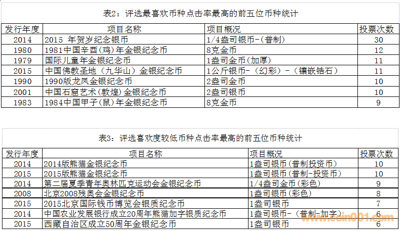 ??????在調(diào)查問卷中,有一項幣種個性化評選項目。被訪者可以分別最多填寫三種最喜歡和喜歡度較低的貴金屬幣,或不進行評選。