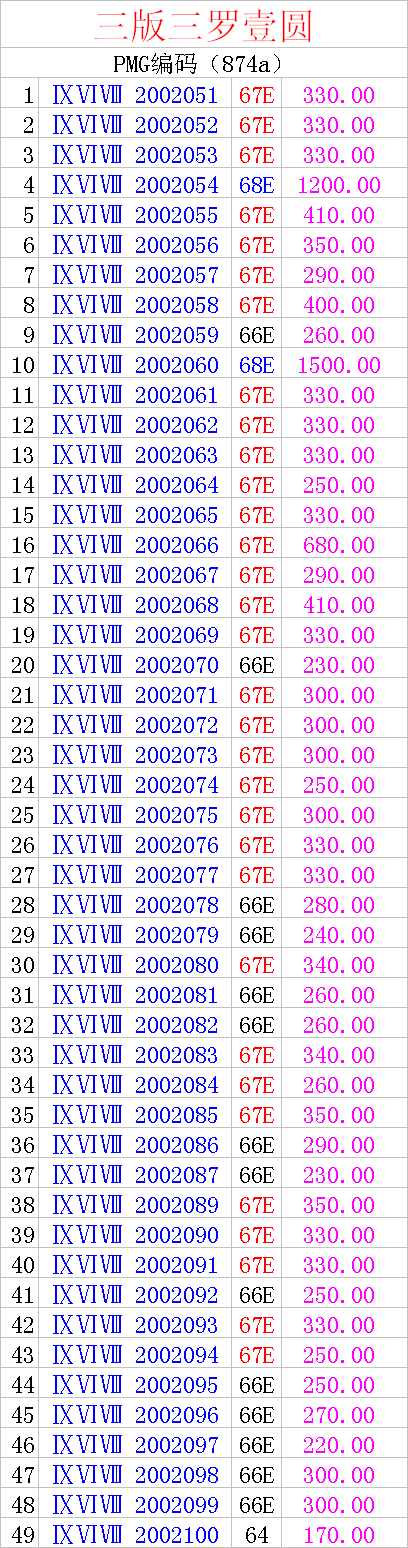 預(yù)售三版三羅壹圓50連號(hào)PMG68、67、66E(超級(jí)靚號(hào)無(wú)47)