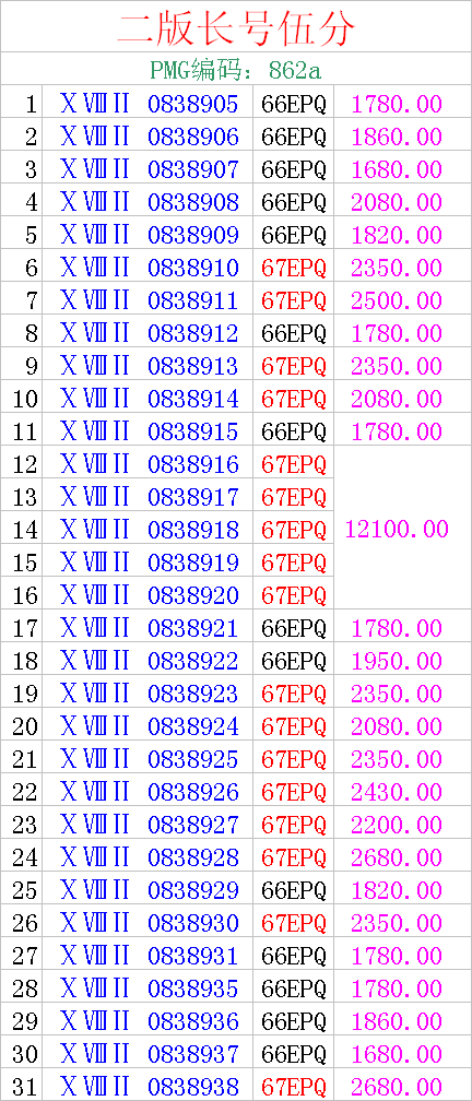 預(yù)售二版長(zhǎng)號(hào)伍分30連號(hào)PMG67E、66E評(píng)級(jí)幣(好號(hào)無(wú)47)