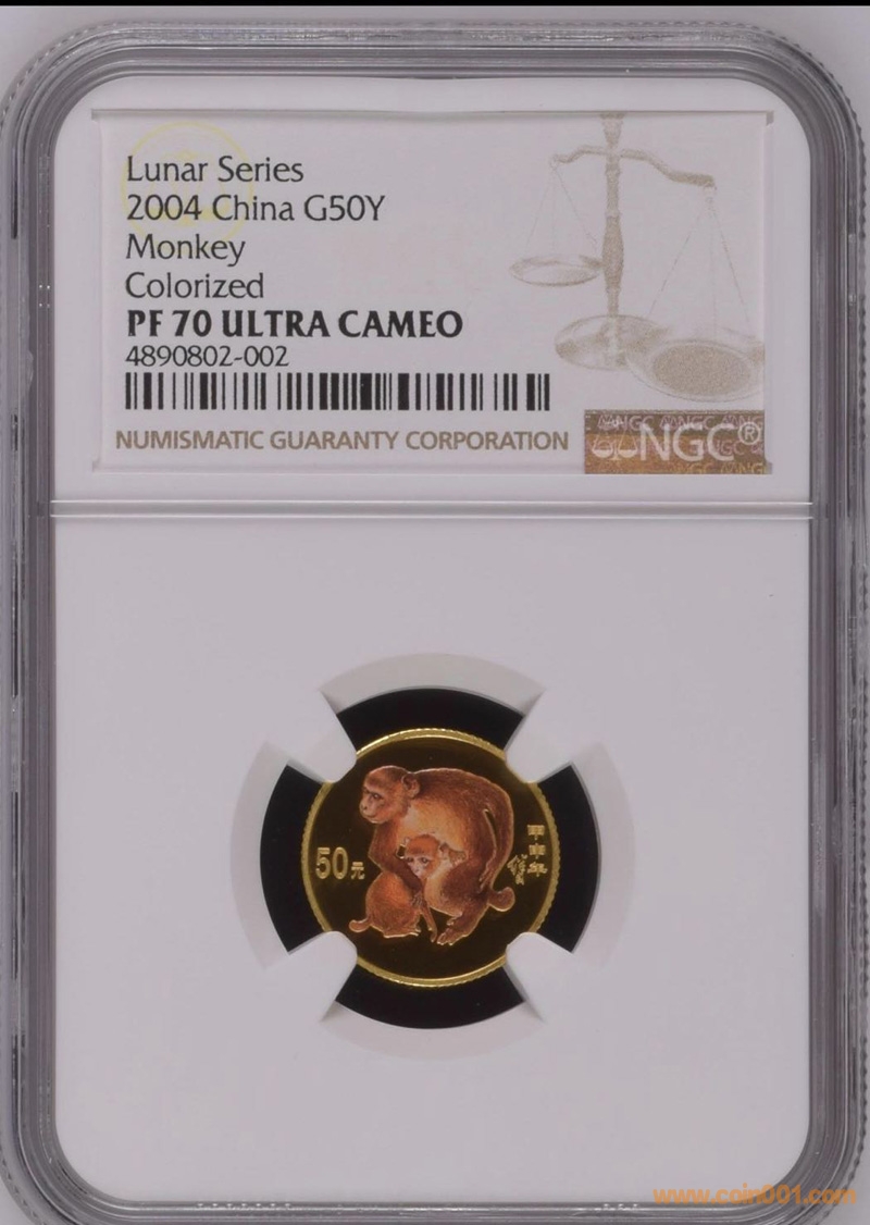 2004年彩金猴70分3250/枚帶證無(wú)盒