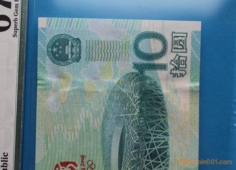 PMG 67E 絕品大陸奧運鈔 ..