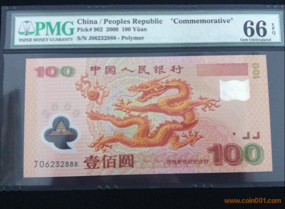 千禧龍鈔PMG【J06232888EPQ】66分-生意發(fā)發(fā)發(fā)-合售16800元終身包絕中絕包真
