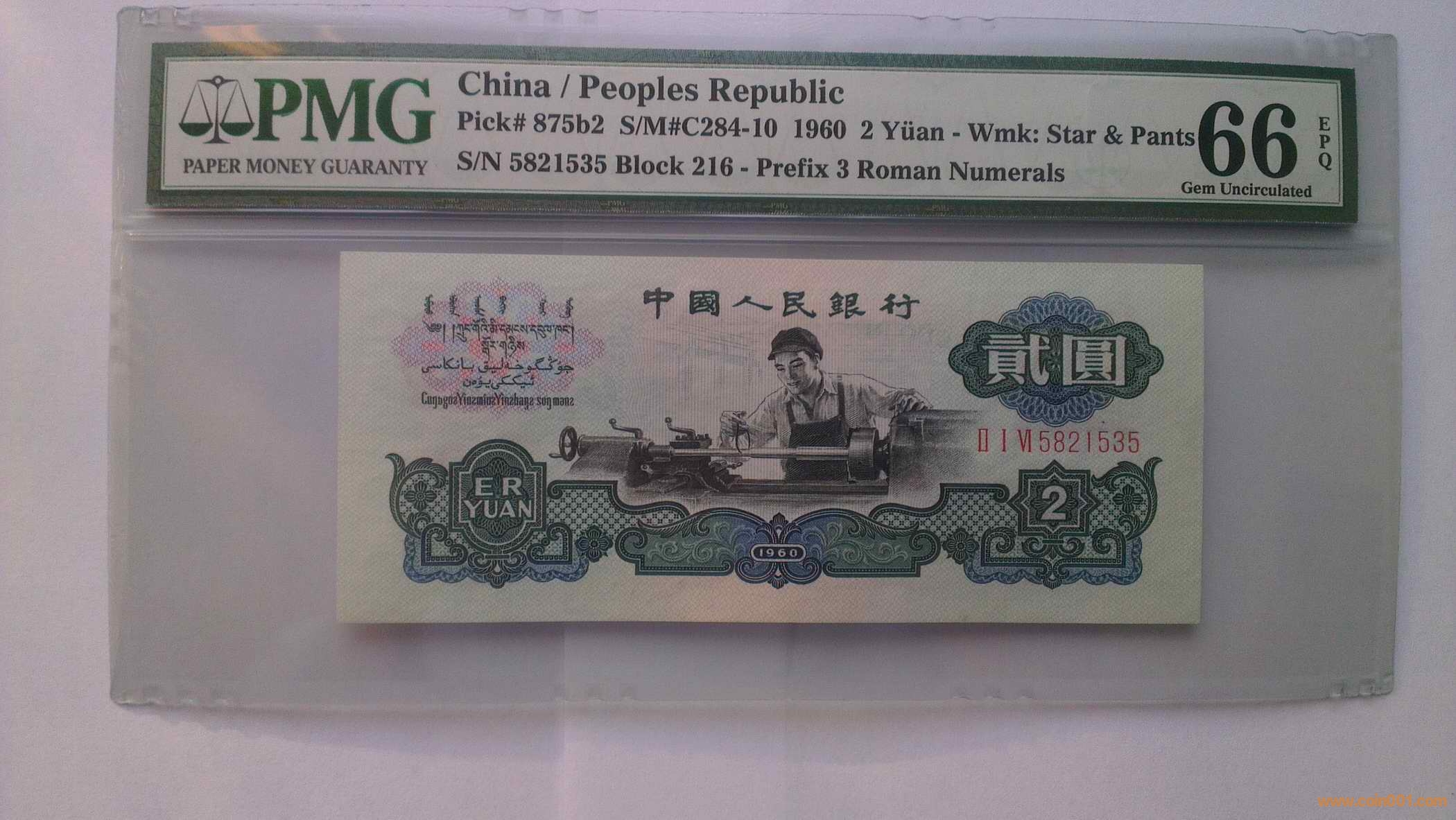 冠號216 號碼5821535 PMG66EPQ 好號對稱號 價(jià)格3150元