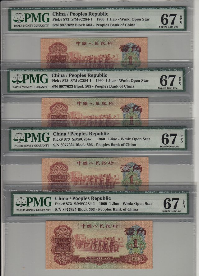 PMG67分棗紅一角四連號 ..