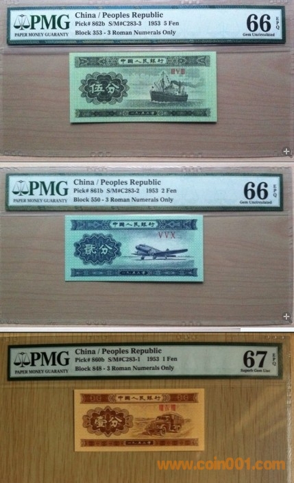 無號一分--三冠編號860b--PMG-67分---(單出220元一張)(注3冠)