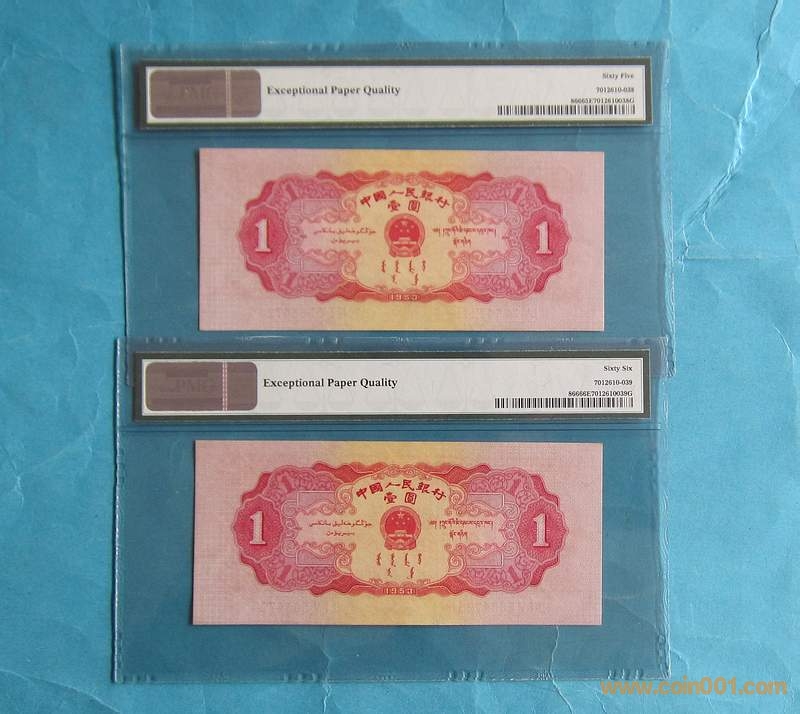 PMG 65、66E 紅一元2張連 ..