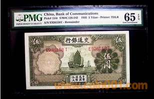 民國帆船交通銀行5圓 ..