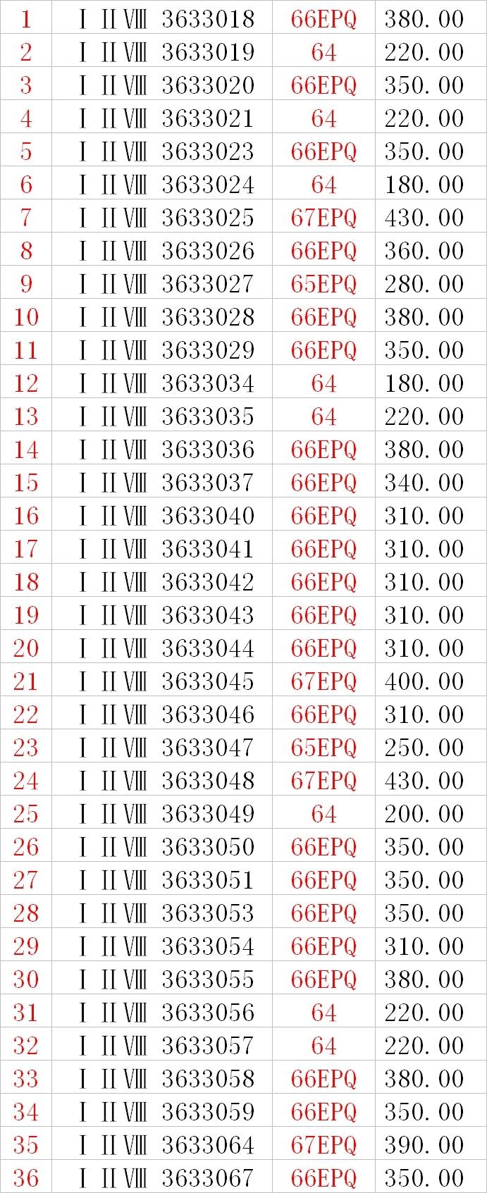 引用 引用第2樓jianghaidong于2014-01-26 17:31發(fā)表的 : 按QQ聯(lián)系價(jià)確認(rèn)二羅一元874C 67E 尾326、327兩枚,謝謝!