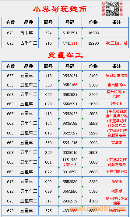 五星車工補號,古幣 ..