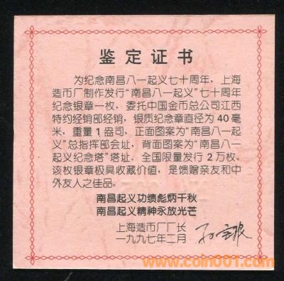 上海造幣廠1997年紀(jì)念 ..