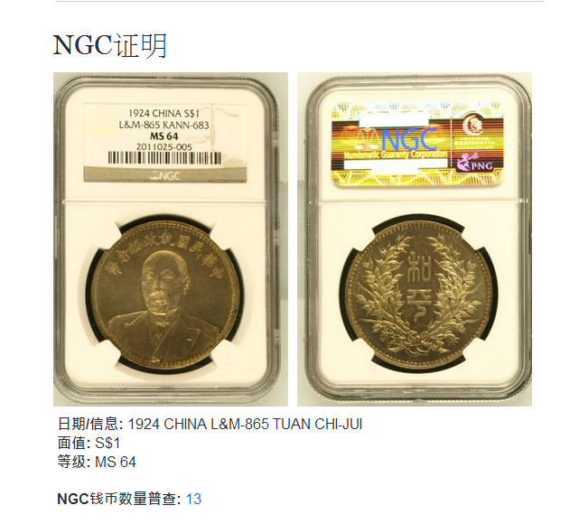 ◆NGC MS64 段祺瑞 鏡面 ..