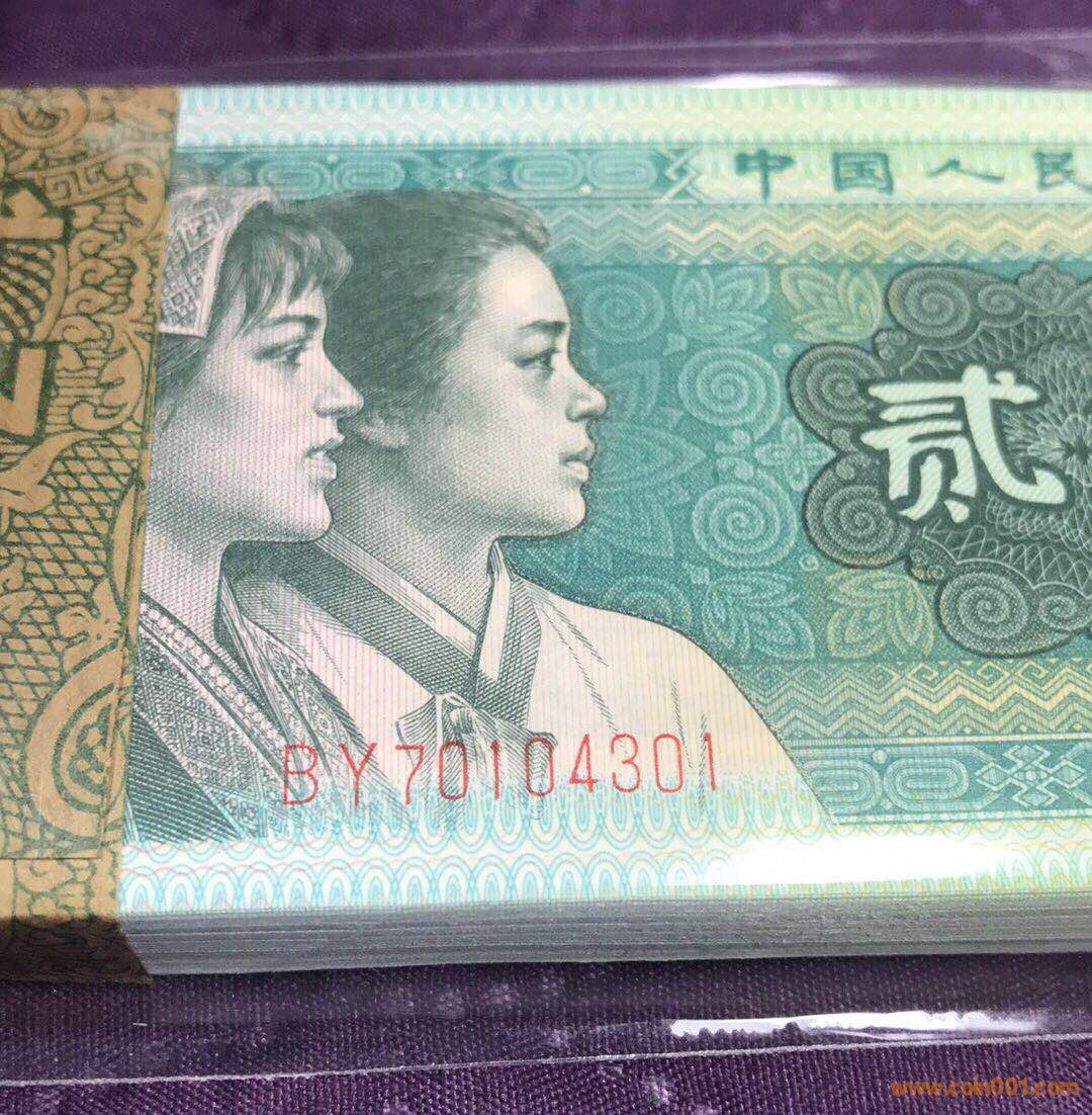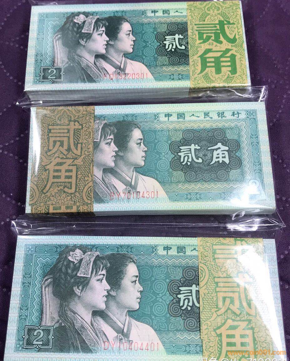 8002熱門品種全新100張連號(hào) 已經(jīng)退市很長時(shí)間的80年2角,你可能已經(jīng)有很多年在市面上沒有見到過了,哪怕是一張舊的都沒有見到過。銀行原始狀態(tài),腰帶完整。票面干凈整潔,四角尖尖,封裝完好,增值潛力無限。