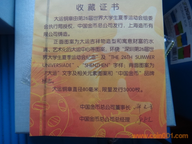 金總發(fā)行大運(yùn)會(huì)大銅章