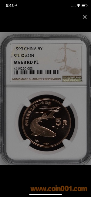 中華鱘精制幣 NGC PF67RDUC1000 帶卡冊只有一枚